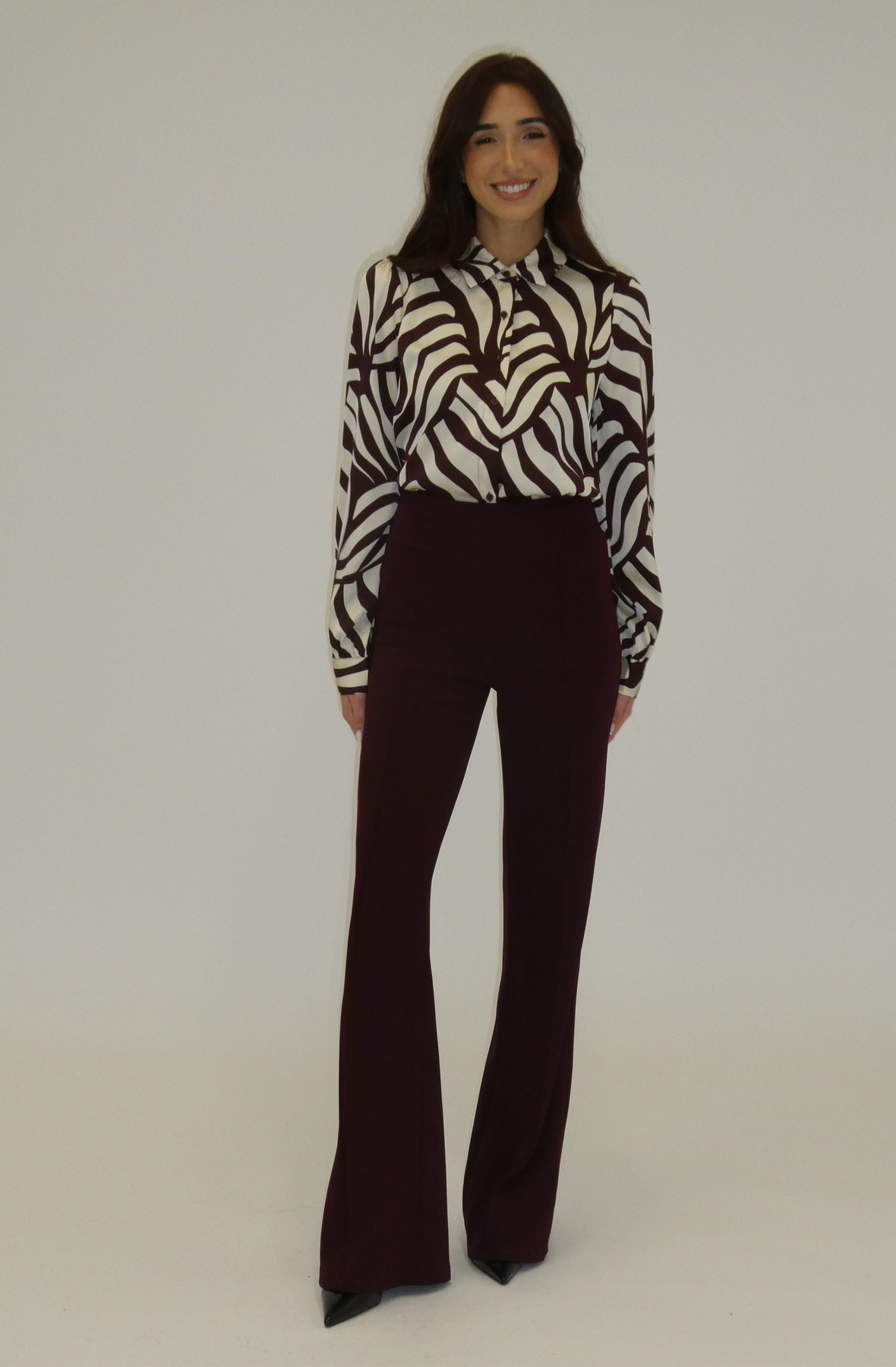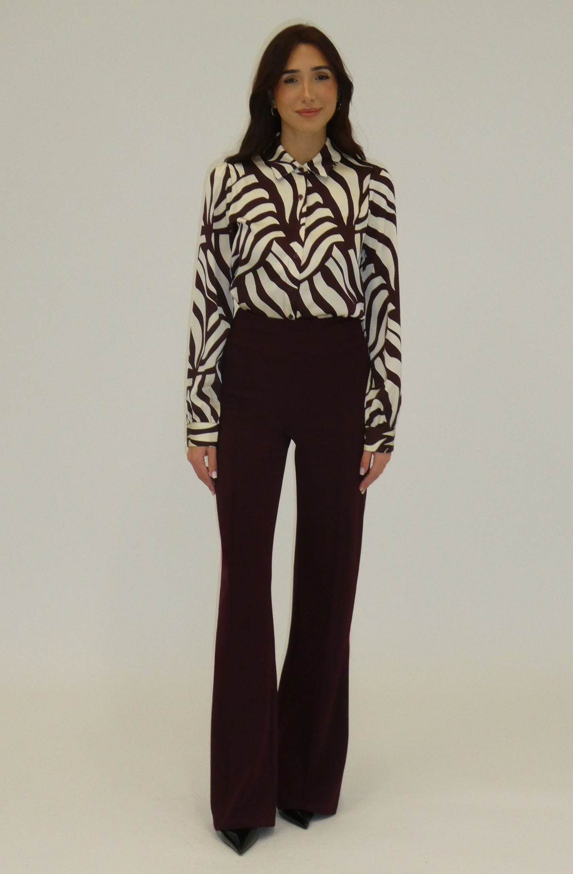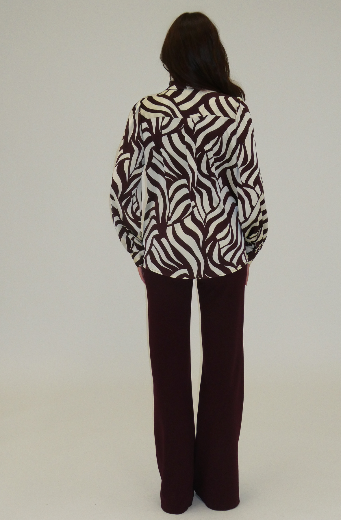 A modern take on a statement classic, this abstract zebra print blouse blends bold pattern with effortless polish. Designed with a soft drape and fluid movement, it features a classic collar, full button-front closure, and long sleeves for an easy, versatile silhouette. The high-contrast print adds visual interest while remaining refined enough for both work and weekend styling. Pair it with tailored trousers for a sharp look or denim for a relaxed, contemporary feel.
