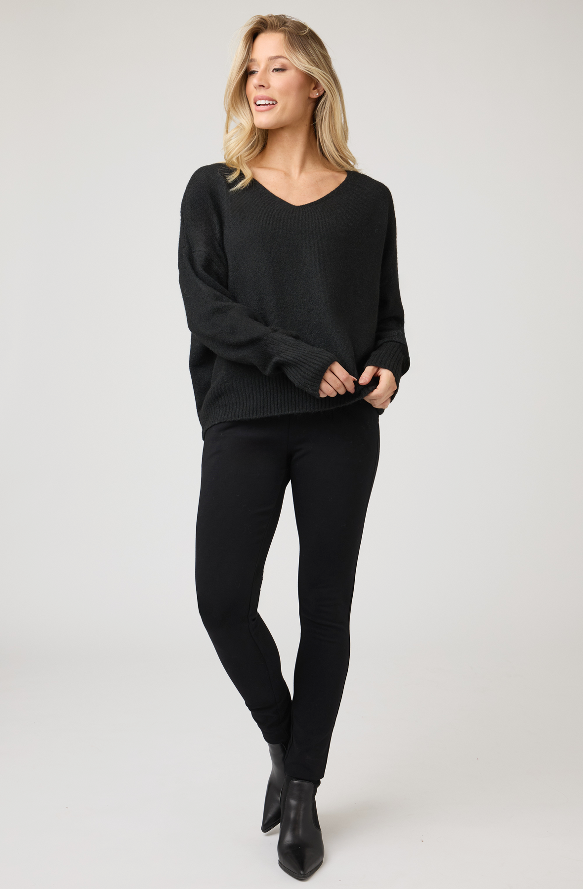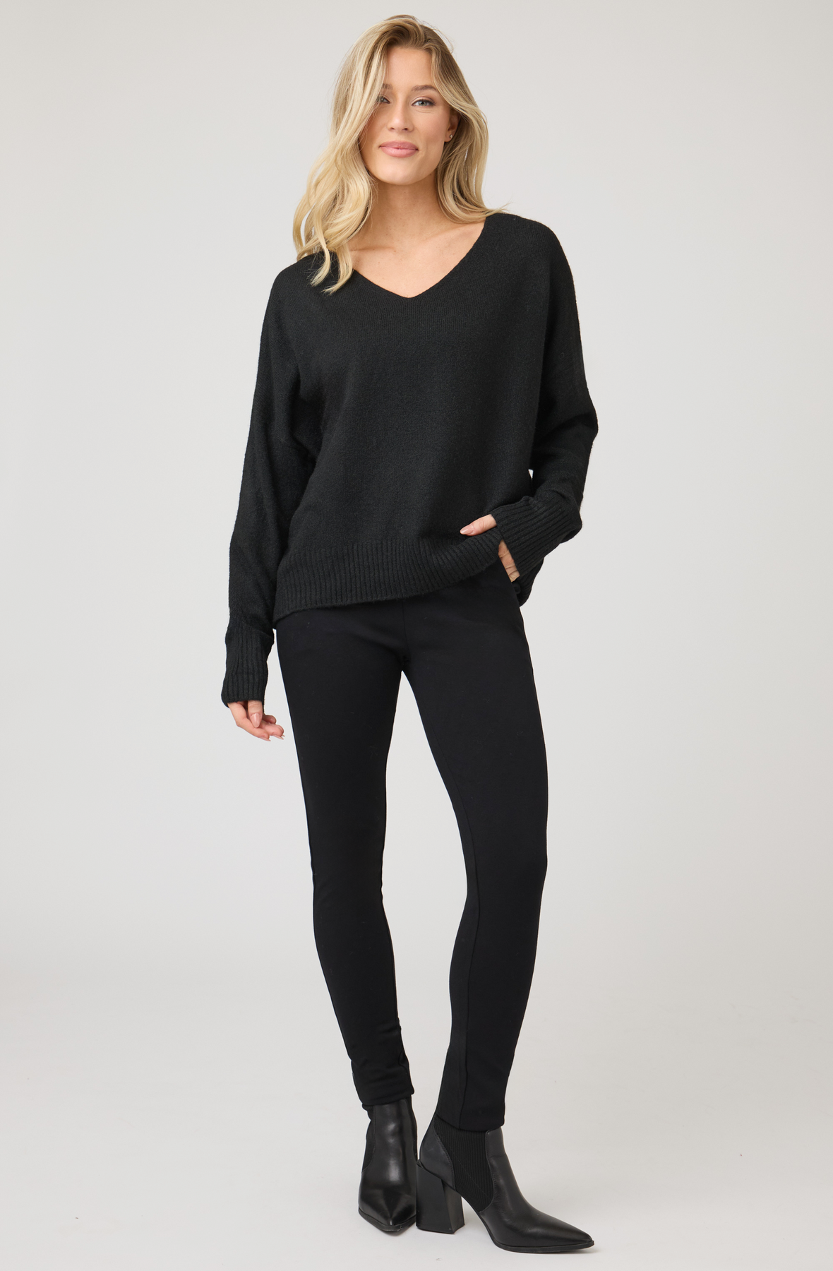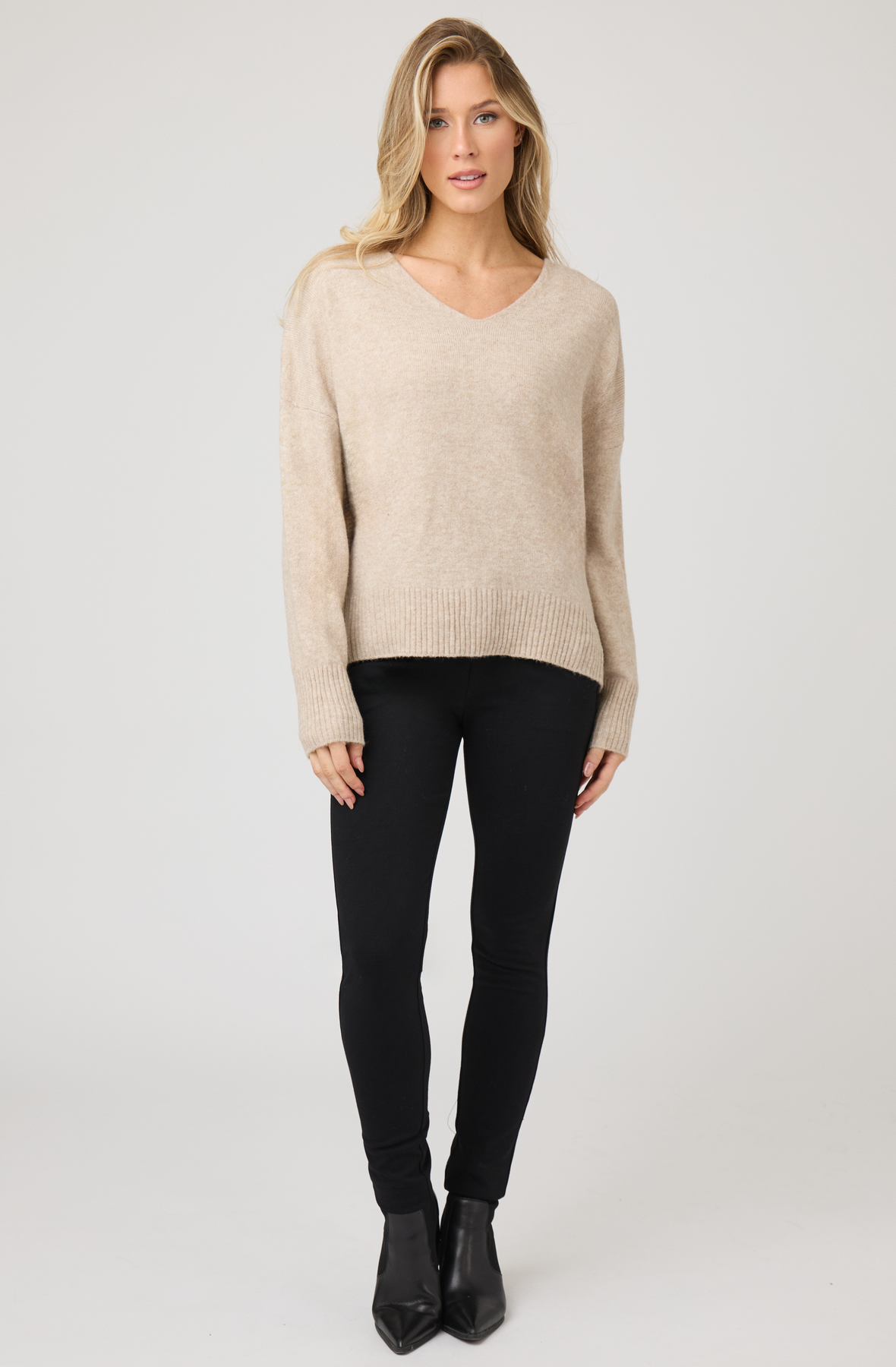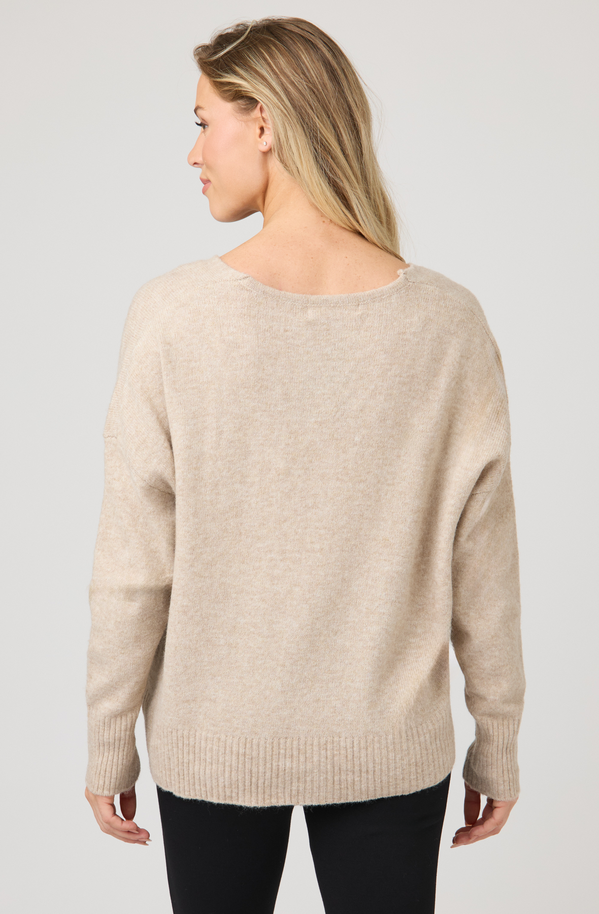 Soft, sustainable, and effortlessly chic, this V-neck sweater offers a perfect balance of comfort and polish. Designed in a relaxed silhouette, it features a fine-gauge knit with a subtle ribbed hem and cuffs for a refined finish. Crafted from a premium blend of recycled and natural fibers, it provides warmth, breathability, and timeless appeal for everyday wear.