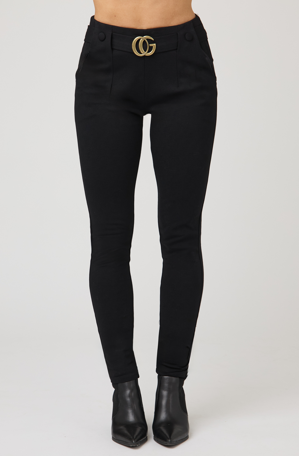 Élégant et raffiné, ce legging taille haute est orné d'une boucle dorée qui apporte une touche chic et sophistiquée à votre tenue. Confectionné dans un tissu doux et extensible pour un confort optimal et une silhouette flatteuse, il se porte aussi bien en journée qu'en soirée avec un pull, un chemisier ou un blazer.