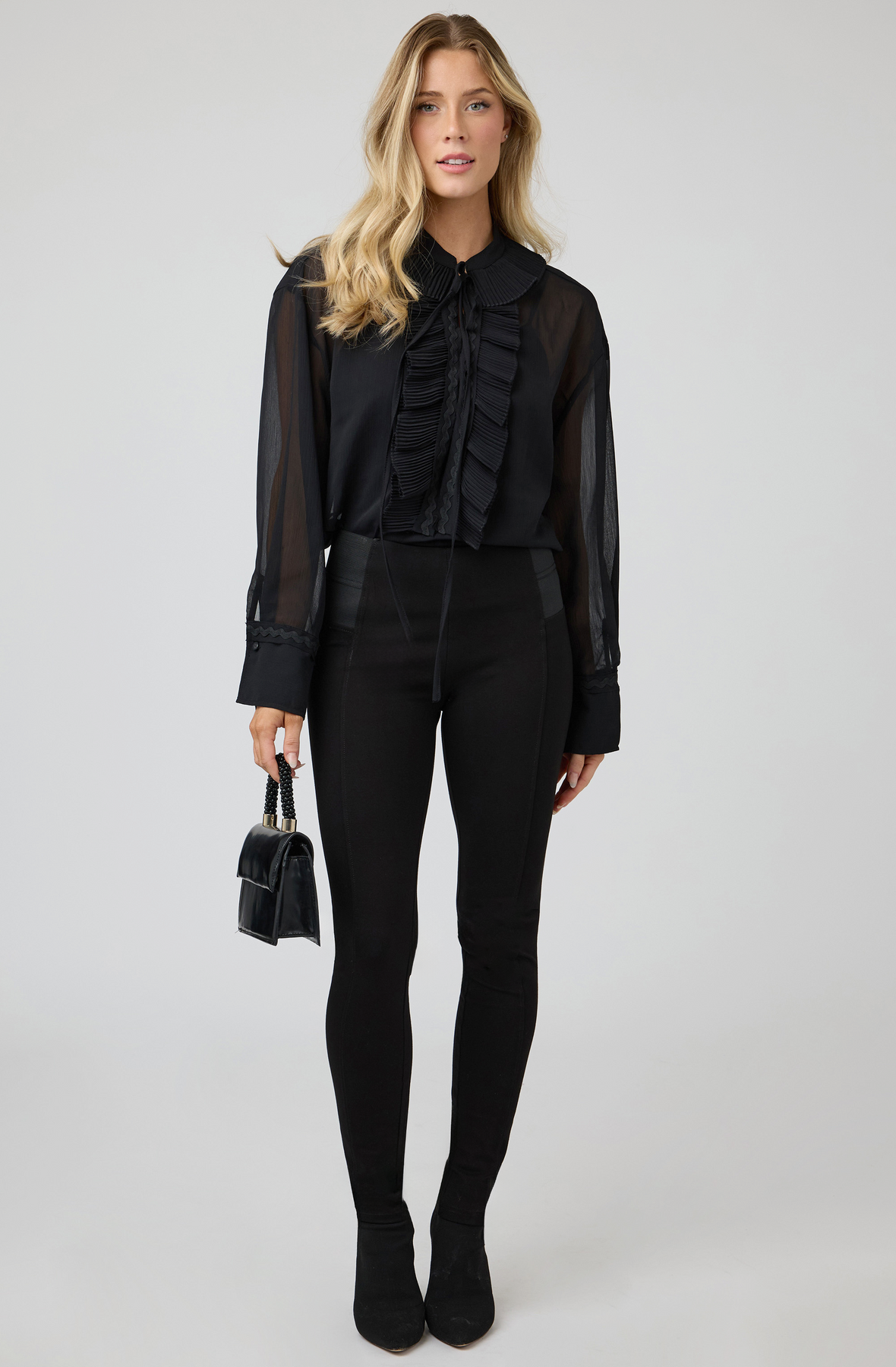 Confortables et flatteurs, ces leggings taille haute sont dotés d'empiècements élastiques sur les côtés qui affinent la silhouette et offrent un confort optimal tout au long de la journée. Confectionnés dans un mélange de coton doux et extensible, ils se marient parfaitement avec un pull et un blazer pour un look élégant et décontracté le week-end.