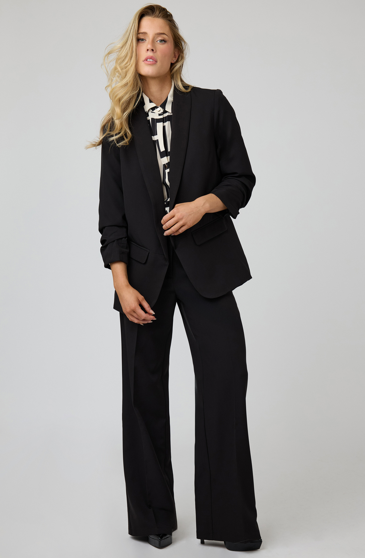 Élégant et raffiné, ce pantalon taille haute à jambes larges offre un toucher soyeux et un drapé flatteur. Avec sa ceinture nette, son pli marqué et sa coupe impeccable, il se porte aussi bien au bureau qu'en soirée pour un look élégant et moderne.